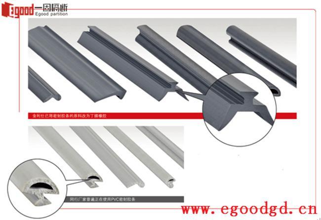例如我们活动隔断屏风使用的密封胶条,就是这么一个典范示例。当同行厂家普通正在使用PVC密封胶条的时候,一固已将密封胶条的原料改为丁腈橡胶,丁腈橡胶是由丁二烯和丙烯腈经乳液聚合法制得的,它主要采用低温乳液聚合法生产,耐油性极好,耐磨性较高,耐热性较好,粘接力强等特点。产品的耐磨、抗老化及密封性能得到了绝对性的提高,同时不易断裂的特性也大大提升密封胶条的使用年限,从而保证活动隔断屏风的优秀品质。